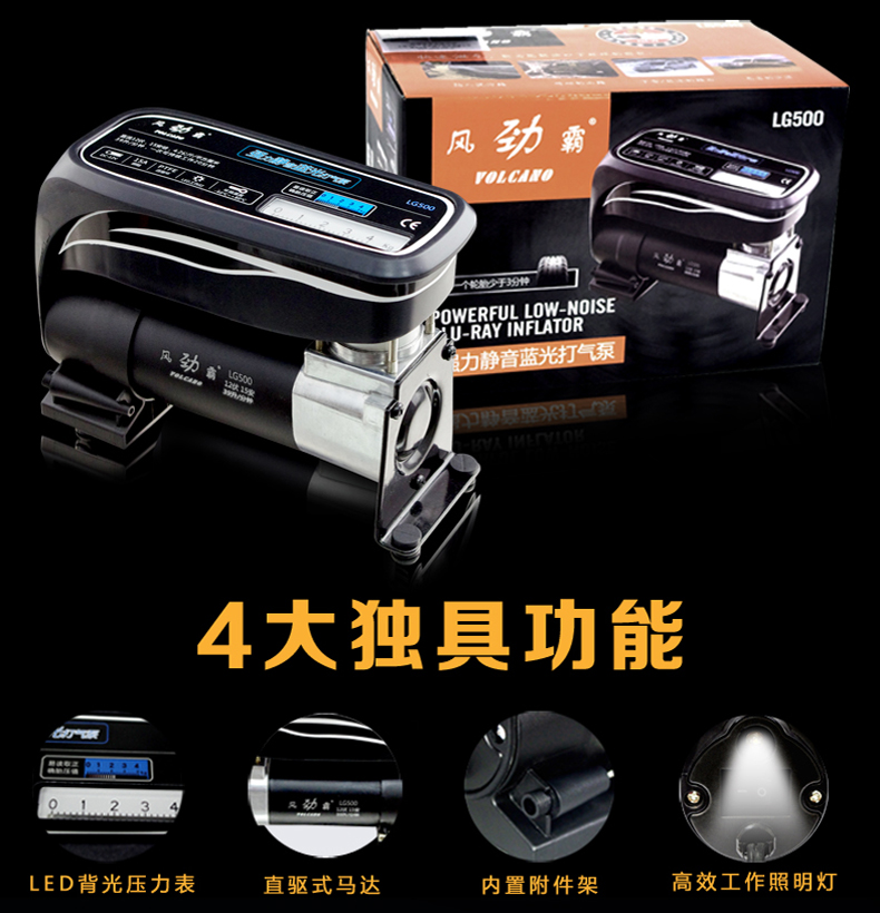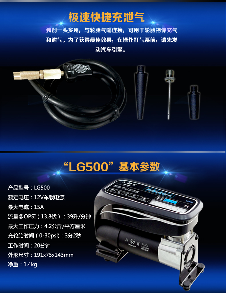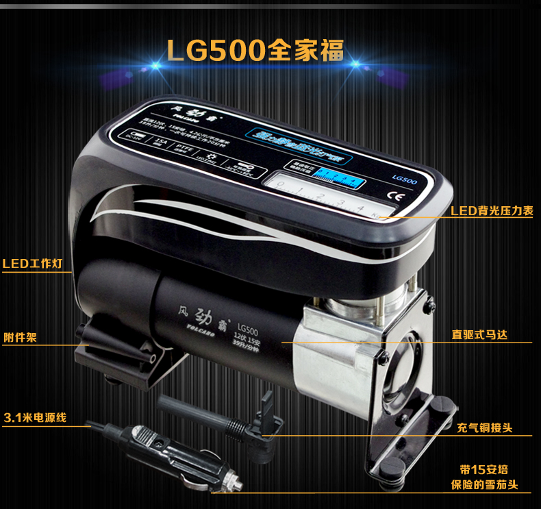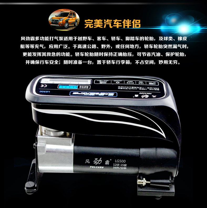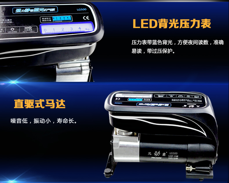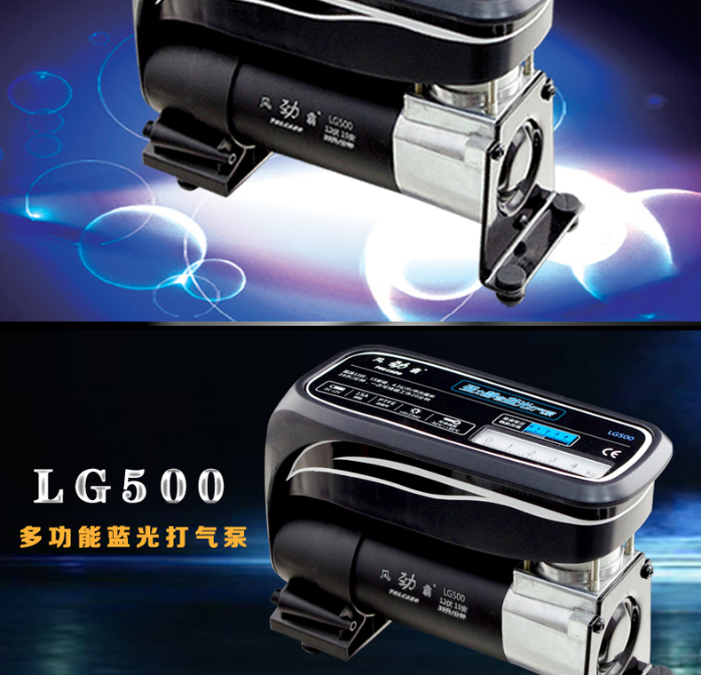 名称:车载打气泵汽车充气机 台湾独创蓝光便携式时尚打气泵LG500
