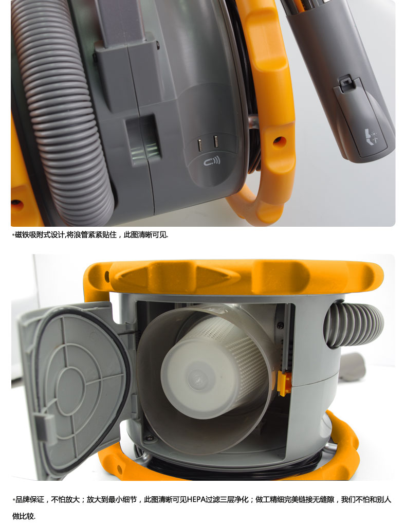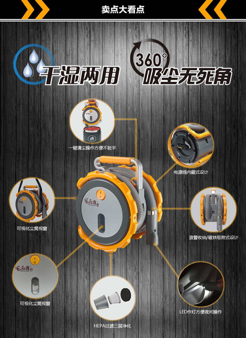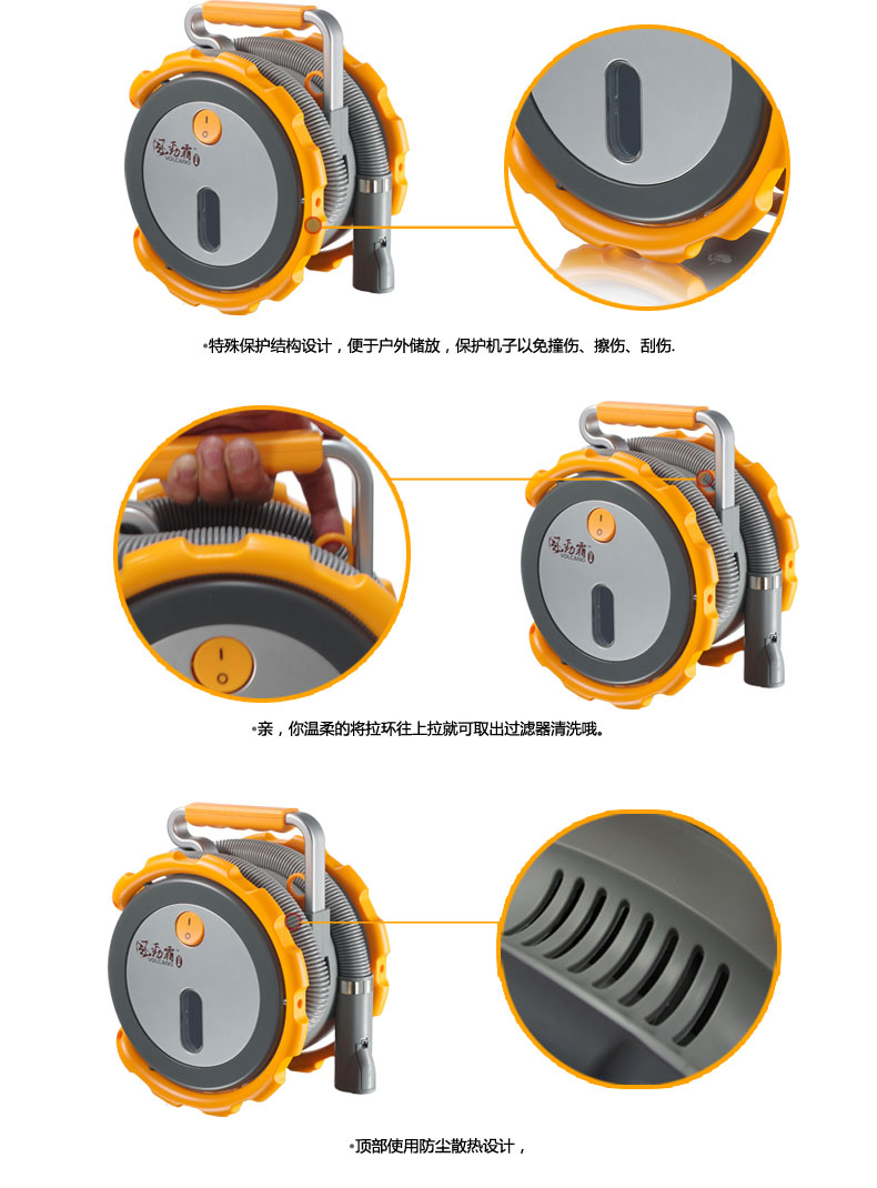 功率最大化 、一键可除尘、HEPA过滤三层净化、LED夜间照常工作、外壳有保护防震防摔