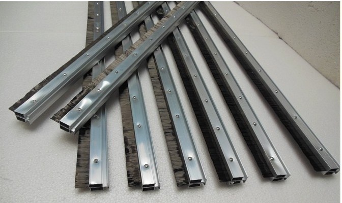 1.产品是由铝合金材料当中对折,把毛固定在中间,在用U行氧化铝固定牢度高。